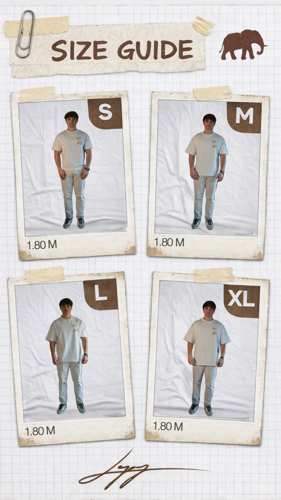 - Chicos: 1,80 - Talla L